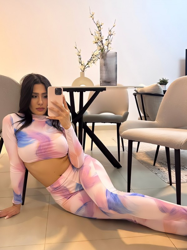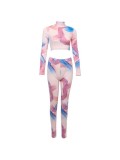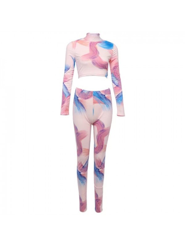 - PINK LEGGINGS & TURTLE NECK LONG SLEEVED CROP TOP