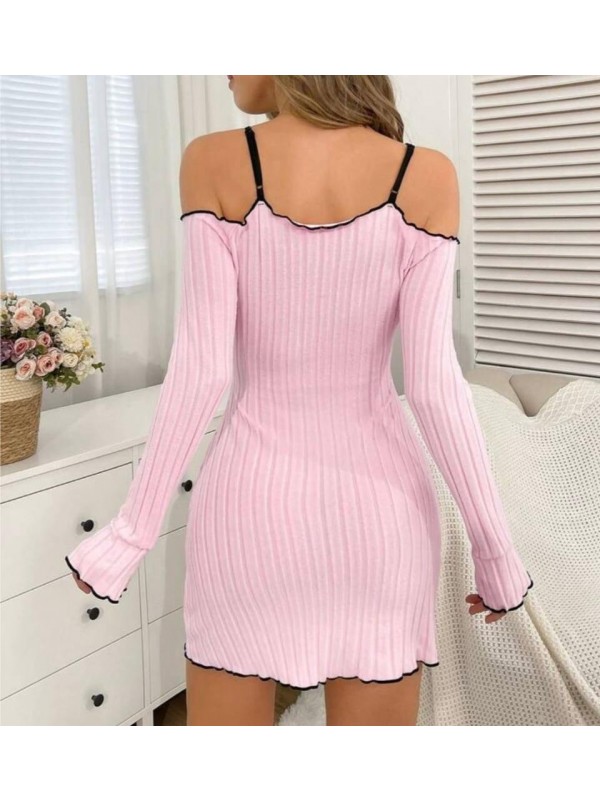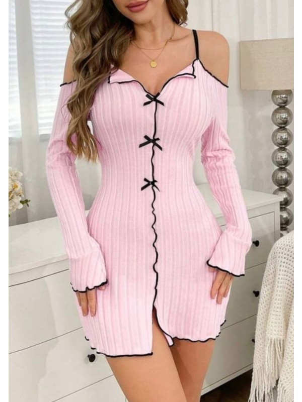 - Ribbed cute bow sexy sleepwear