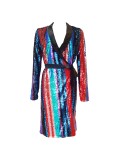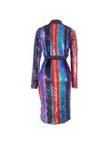 - LONG SLEEVED MULTICOLORED SEQUINT VERTICAL STRIPED DRESS