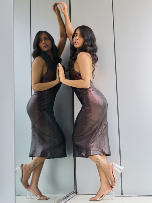 - Bronze sequins midi dress