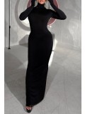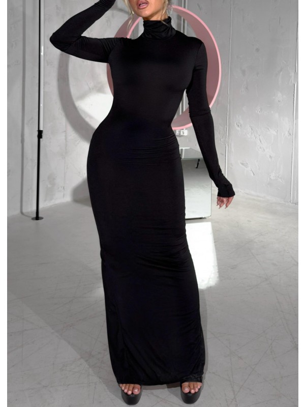 - Long sleeve, turtleneck with split thigh & backless details